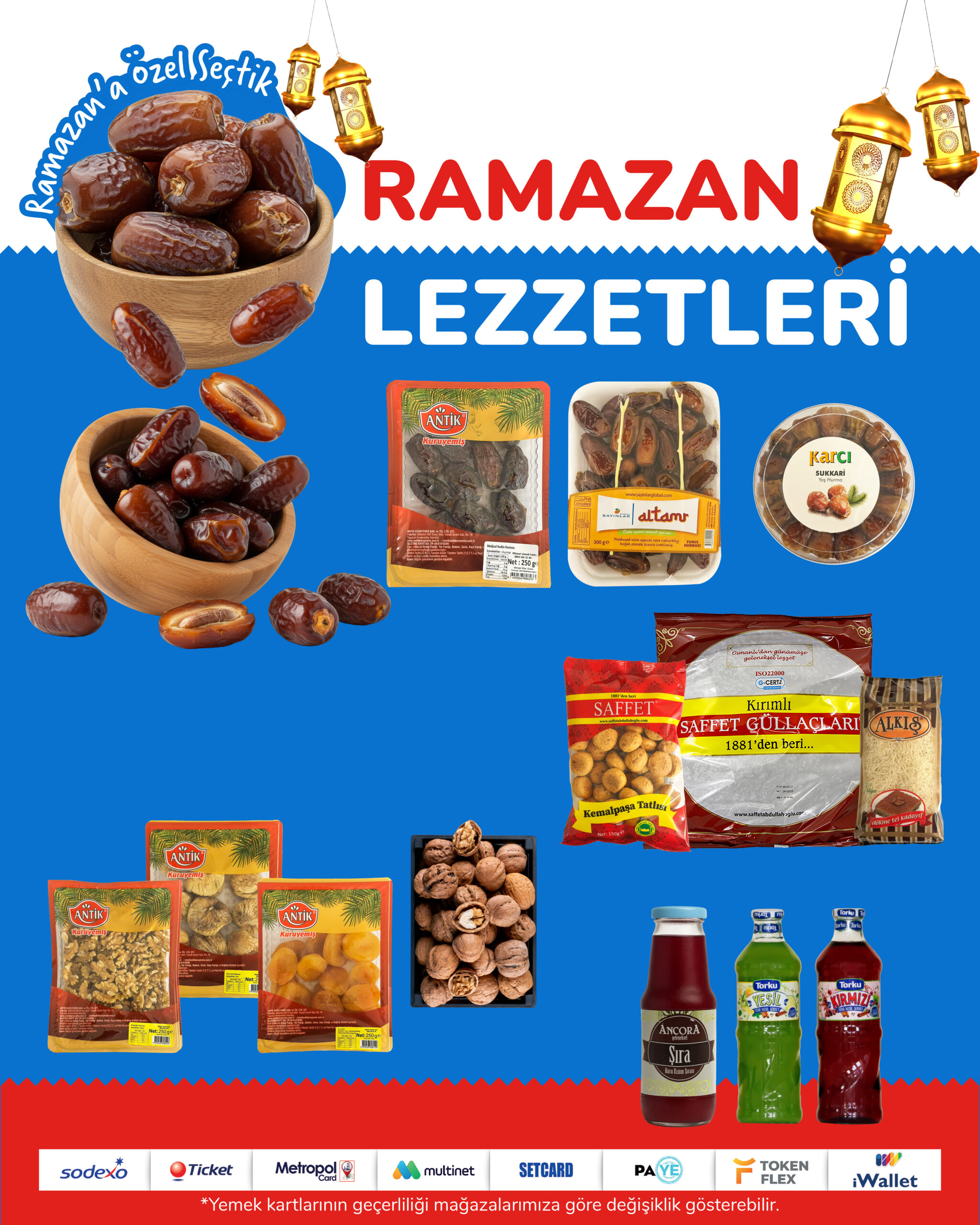 12–26 Şubat tarihleri arasında, sahur ve iftar sofralarına lezzet katacak geleneksel Ramazan lezzetlerinden kahvaltılıklara, şarküteri ve temel gıda ürünlerinden yöresel tatlara kadar pek çok üründe Ramazan’a özel indirimler sizi bekliyor.